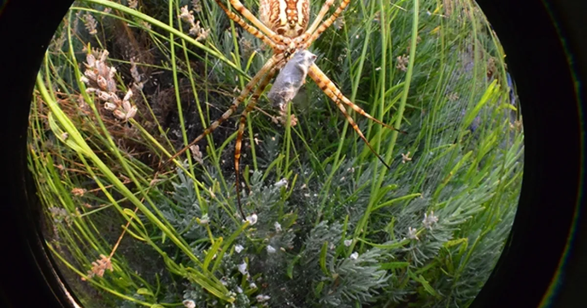 For 30 minutes, we watched a well-fed banded garden spider catch bee after bee in its sticky web that it had cleverly anchored between two lavender plants. It's all about location, location, location! Go where the floral visitors are.