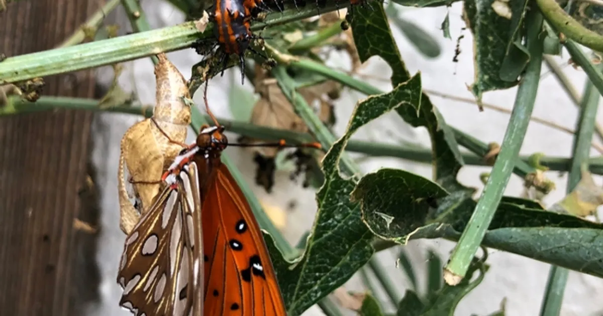 - A Gulf Fritillary (Agraulis vanillae) eclosing