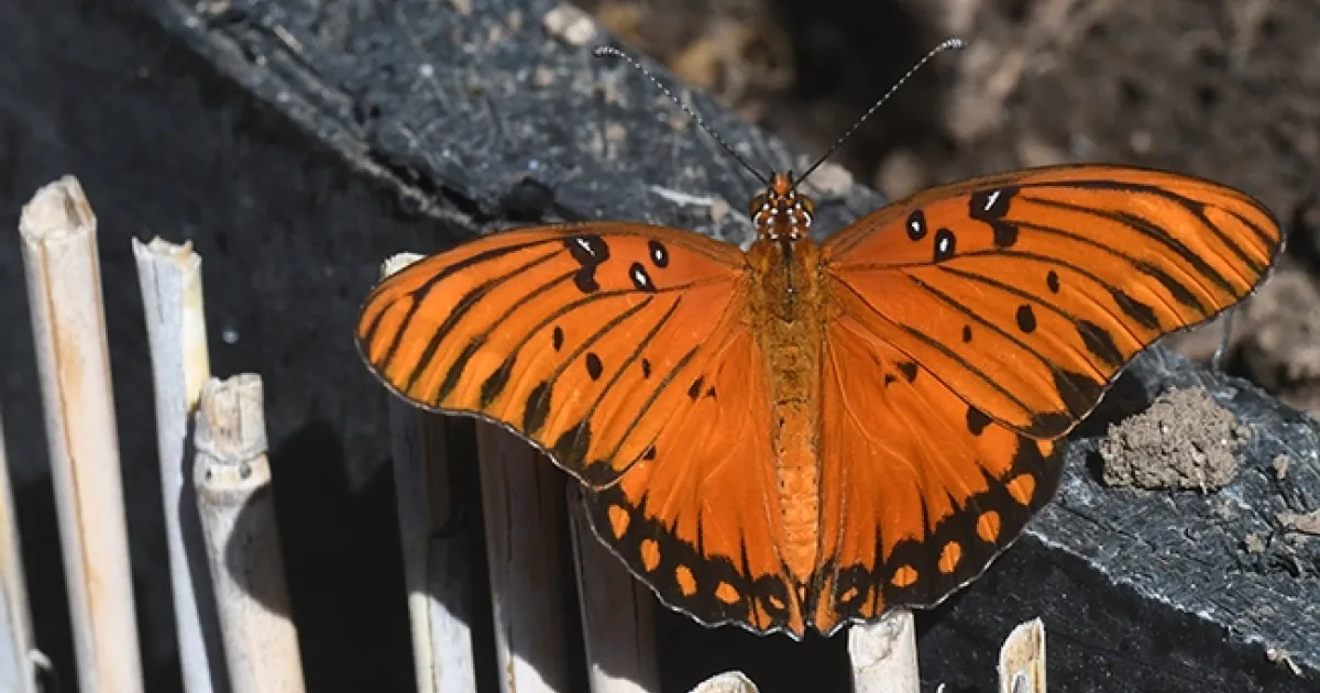 In our pollinator garden, the Gulf Frits usually skeletonize the plant. They eat the leaves, flowers, the fruit, and then start in on the bark.