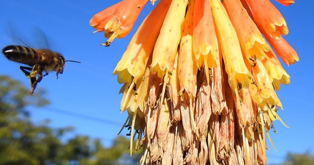Well, if the temperature soars to 50 or 55, you might see honey bees slip out of their hives and head for a winter flowering plant commonly known as the "red hot poker" or "Christmas cheer" (genus Kniphofia).