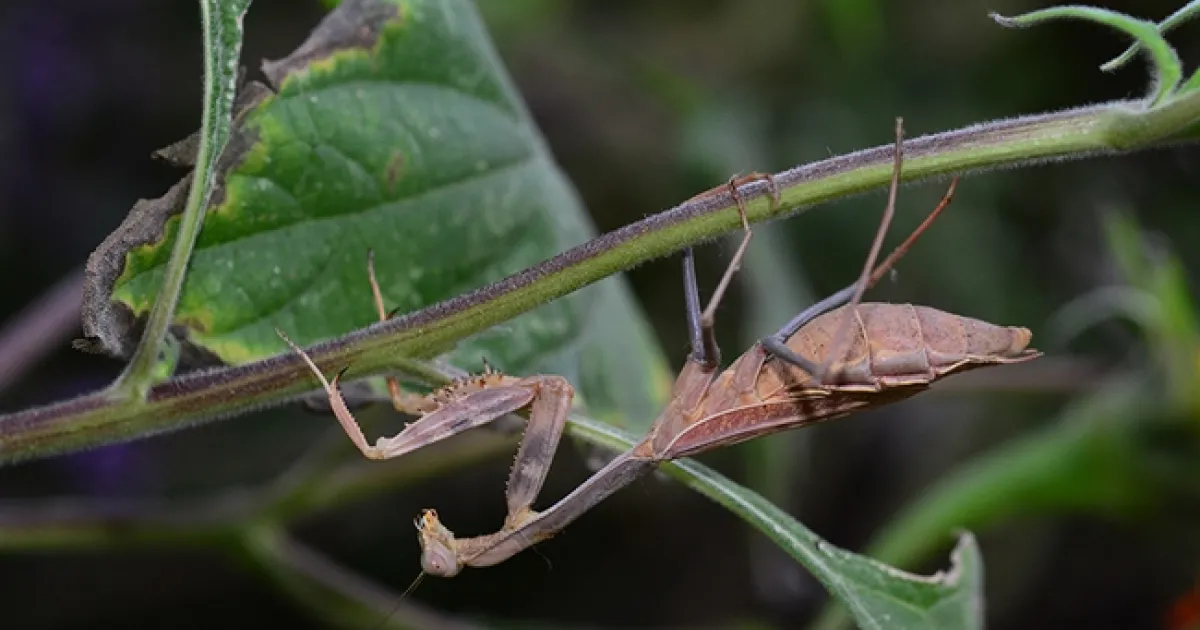 Praying mantis expert Lohit Garikipati, entomology student at the University of California, Davis and an associate at the Bohart Museum of Entomology, identified our kitchen guest as a Stagmomantis limbata, a bordered mantis native to North America. “Looks like she wanted to come in for some free food!” Lohit quipped.