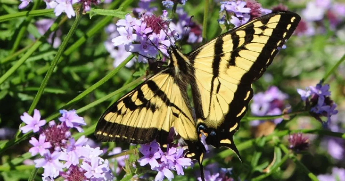 Besides the honey bees, bumble bees, sweat bees, carpenter bees and other pollinators, there's a good chance you'll see such butterflies as the Western Tiger Swallowtail (Papilio rutulus) sailing over the state-of-the-art fence that Eagle Scout Derek Tully and his assistants crafted.