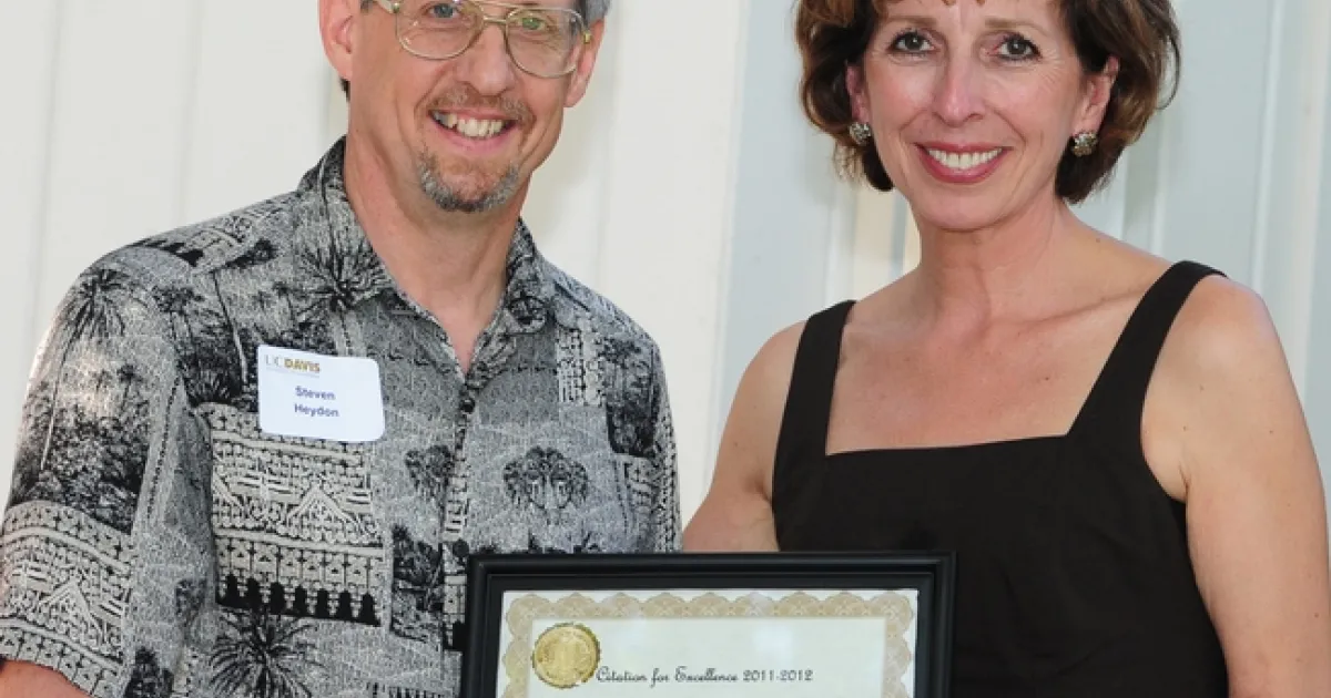That's why we're glad to see Heydon receive the top award in the general contributions category at the UC Davis Staff Assembly's Citation for Excellence awards ceremony, held Aug. 2 at the chancellor's residence.