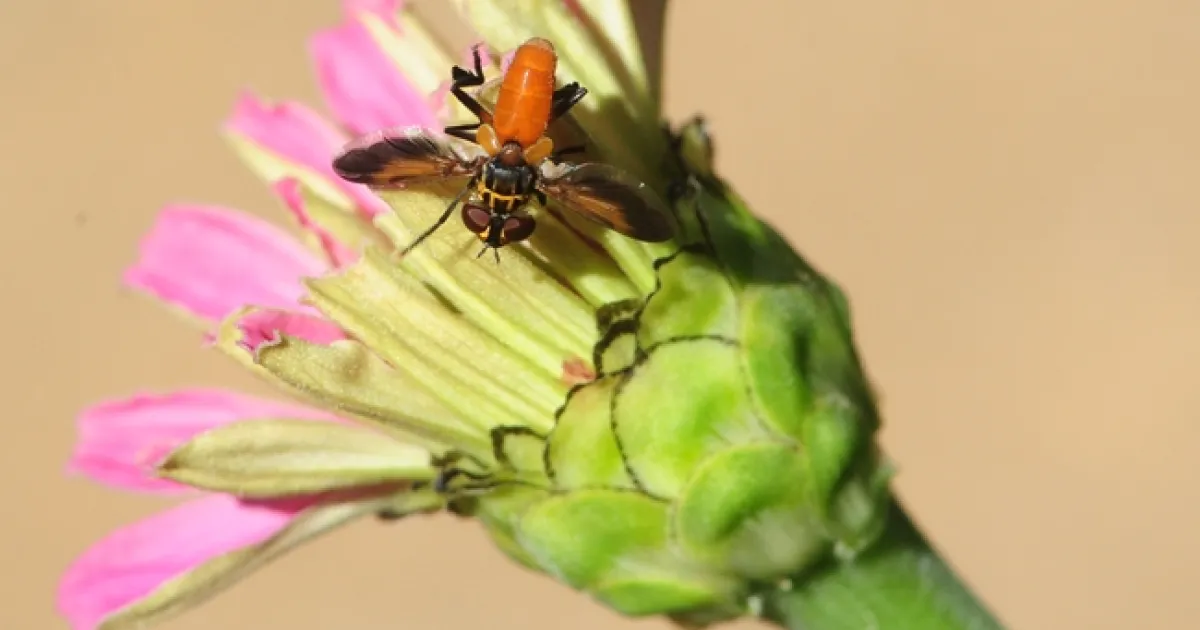 The feather-legged fly is a parasitoid that lays its eggs inside stink bugs and other agricultural pests. (Photo by Kathy Keatley Garvey)