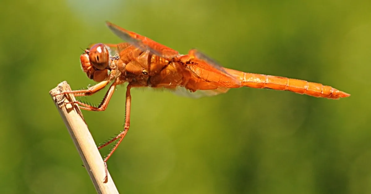 We nicknamed him "Big Red." Big Red? Actually, a flame skimmer dragonfly (Libellula saturata), native to western North America.
