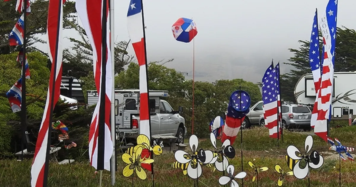 On a camping trip last week to Doran Regional Park, Bodega Bay, we admired our neighbors' display of American flags—bordered with a dozen honey bees.