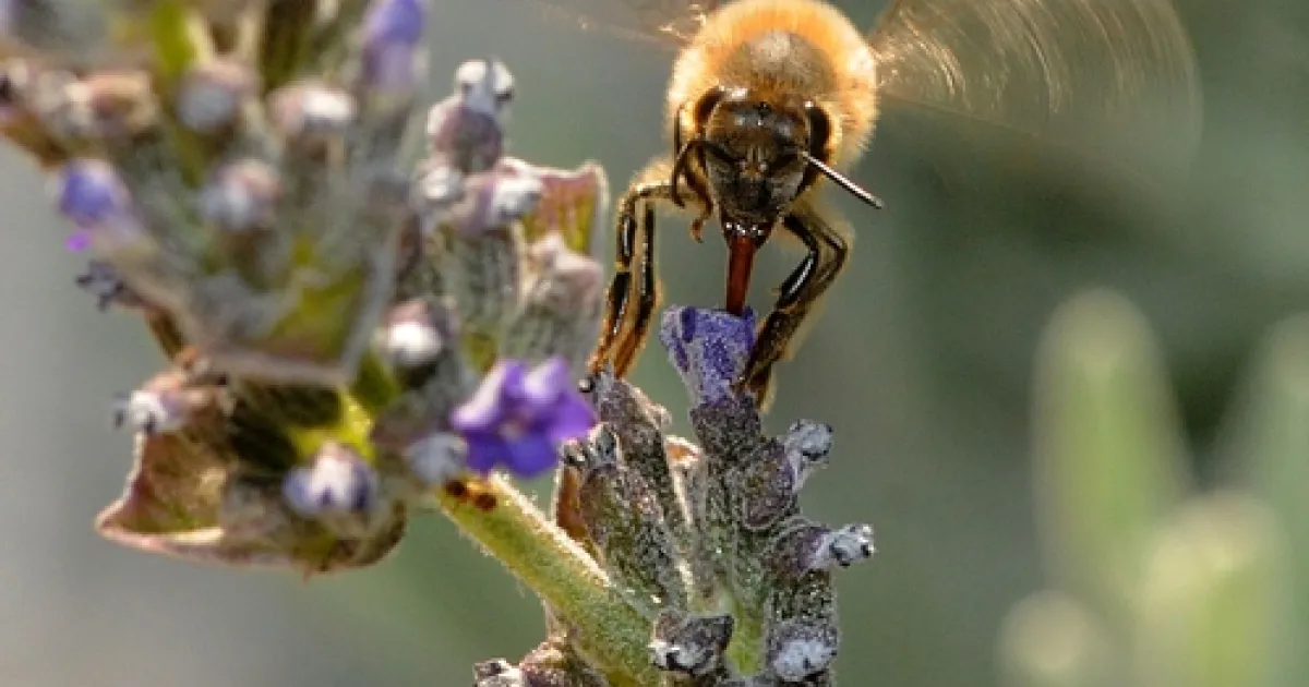 HONEY BEE wings in motion. The bee can fly a distance of two to two-and-a-half miles. (Photo by Kathy Keatley Garvey)