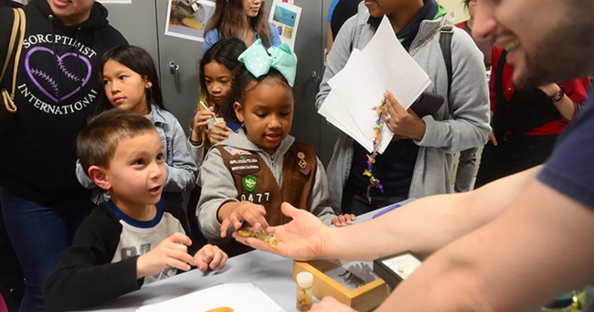 “Logan is only in kindergarten but he was showing his mom our arachnid drawer and describing the differences between the Emperor Scorpion, Pandinus imperator, and the Dictator Scorpion, Pandinus dictator,” said Bohart associate and scorpion scientist Wade Spencer, an undergraduate student at Bohart Museum. “Thankfully, he wasn't at all shy when I asked him to repeat what he had just said to the crowd.”