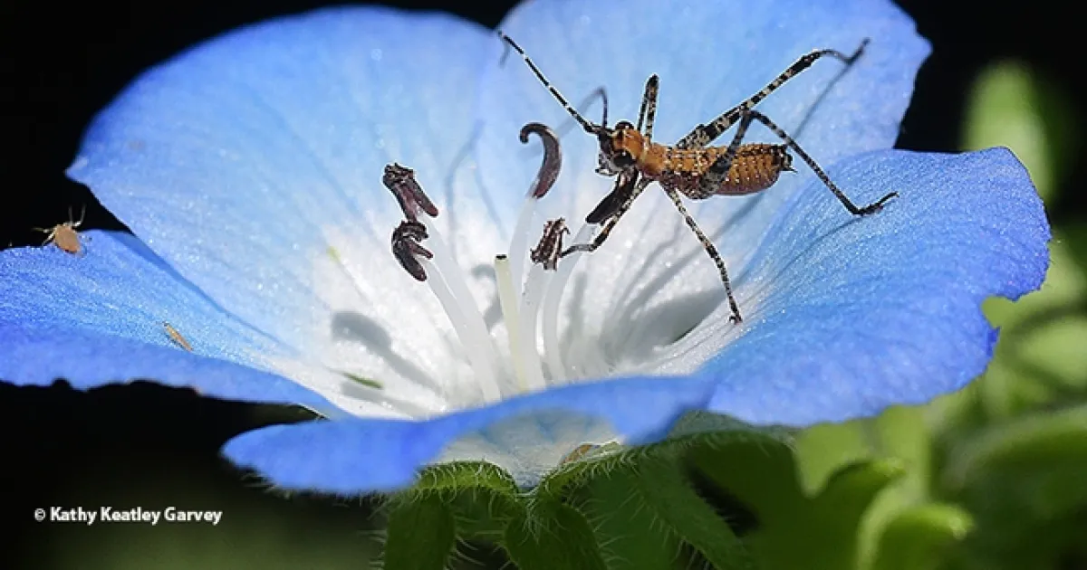There it was, nestled inside a baby blue eyes blossom, Nemophila menziesii, which is a spring-blooming plant native to California, Oregon and Baja California.
