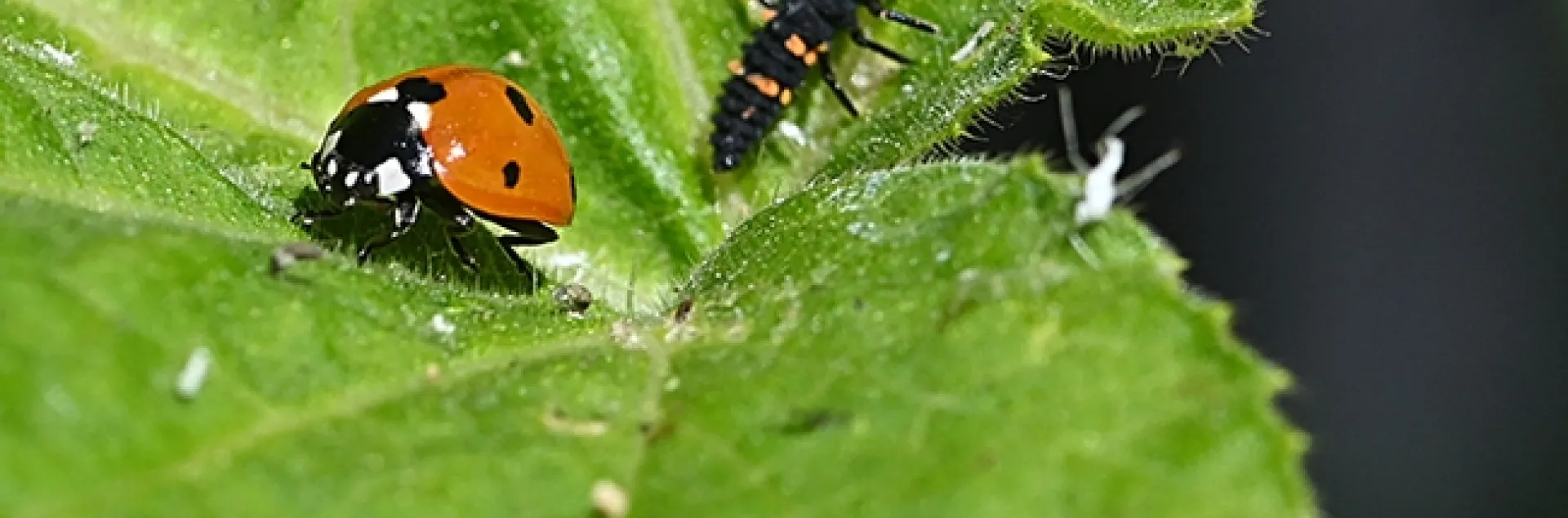 An adult lady beetle can eat as many as 5000 aphids in its lifetime, scientists say. Who knows how many a larva can eat! Who's counting?