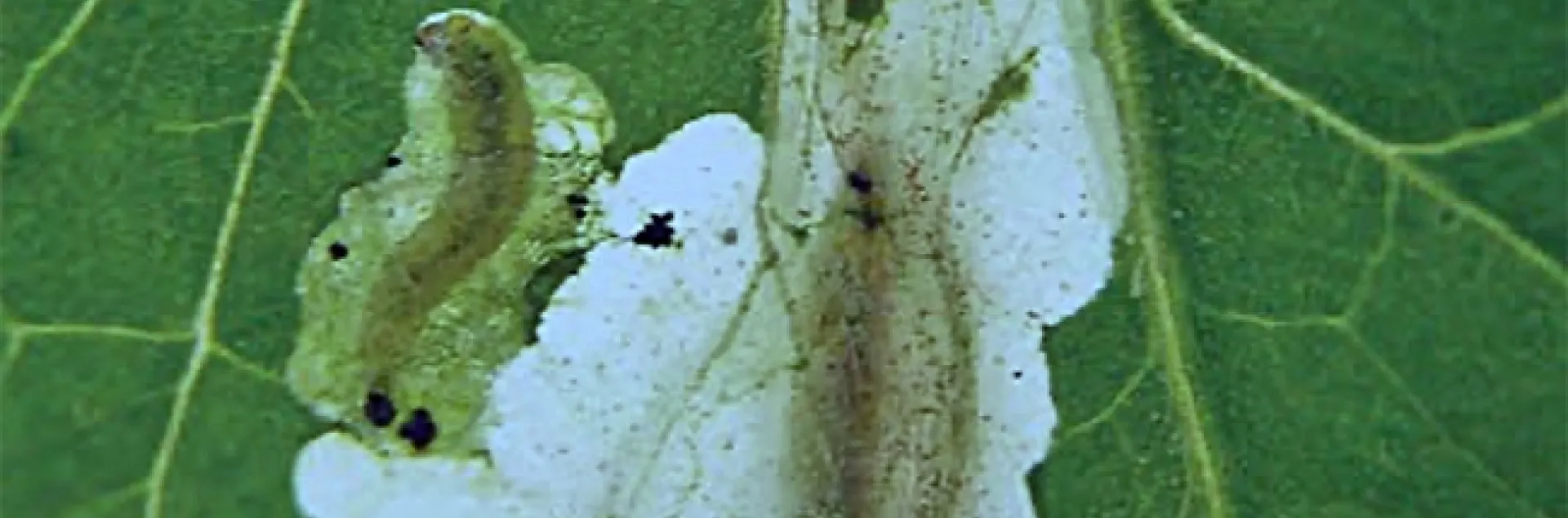 That would include the larvae of Tuta absoluta, a South American tomato leafminer. In its adult stage, it's a moth in the family Gelechilidae. In its larval stage, it's a major agricultural pest.