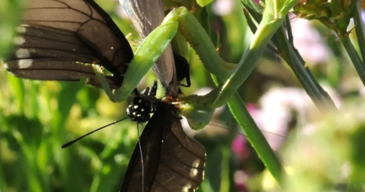 It was a good day for a praying mantis, a bad day for a butterfly.