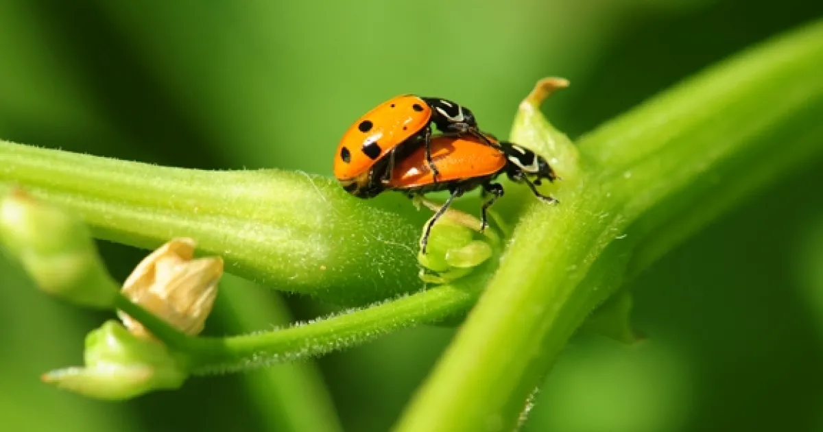 Two lady beetles, aka ladybugs, were doing what comes naturally.