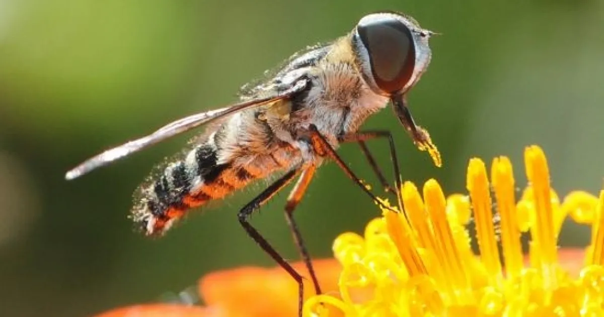 "Pollen Power": A robber fly with a trace of pollen. (Photo by Kathy Keatley Garvey)