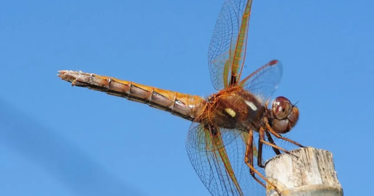 This dragonfly, also called a red-veined meadowhawk, belongs to the family Libellulidae, the same family as our favorite red flameskimmers (Libellula saturata).