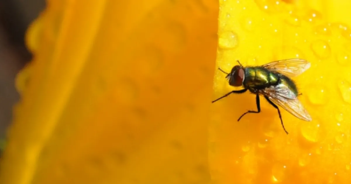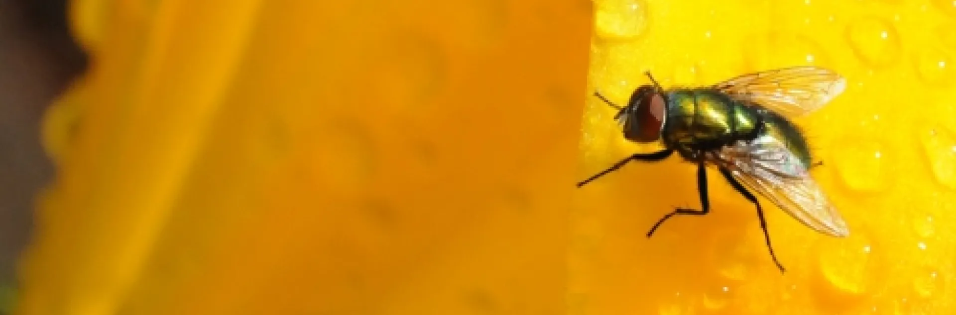 Recently a green bottle fly that touched down on our daylily "made my day." The rich golden blossom and the red-eyed insect with its emerald-green metallic body seemed to go together nicely.