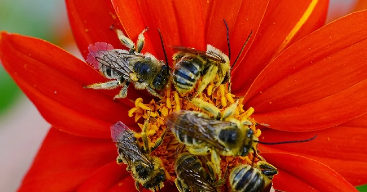 Have you ever seen a cluster of longhorned male bees sleeping overnight on a Mexican sunflower (Tithonia)?