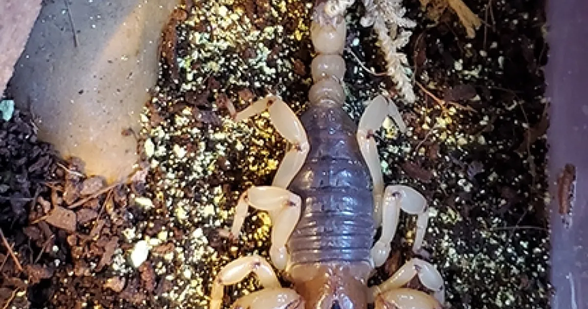 Jochim's labmate, Xavier Zahnle, found the scorpion while he was collecting millipedes "and brought her back to me so I'm not sure how old she is but I've had her for a year and a half."