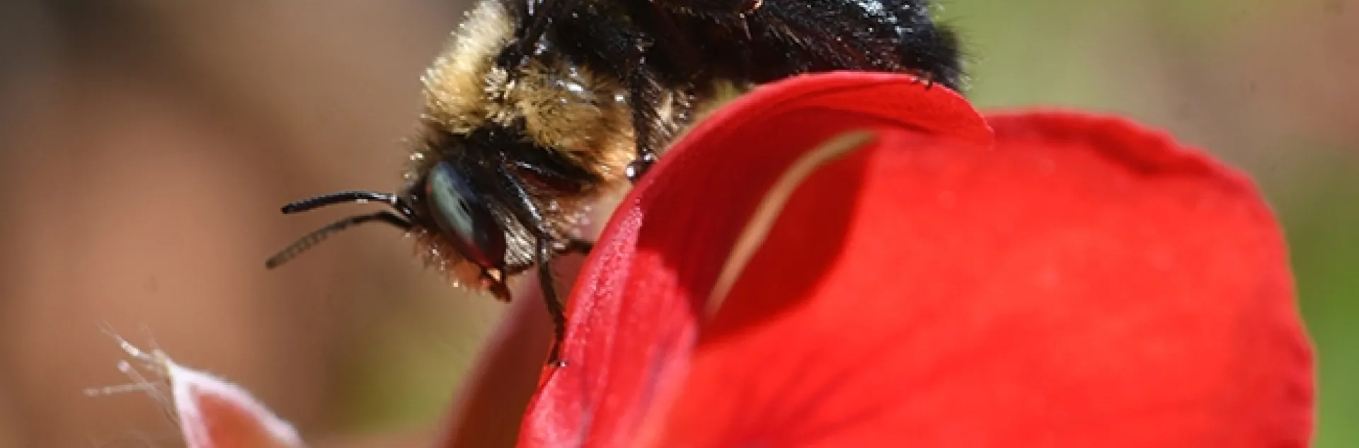 - The Valley carpenter bee, Xylocopa varipuncta, the largest of the California carpenter bees. It's about an inch long. The female is solid black, while the male, commonly known as "the teddy bear bee," is a green-eyed blond. Why teddy bear? It's fuzzy and does not sting--or as the late Robbin Thorp (1933-2019) distinguished emeritus professor of entomology at UC Davis, was fond of saying: "Boy bees don't sting."