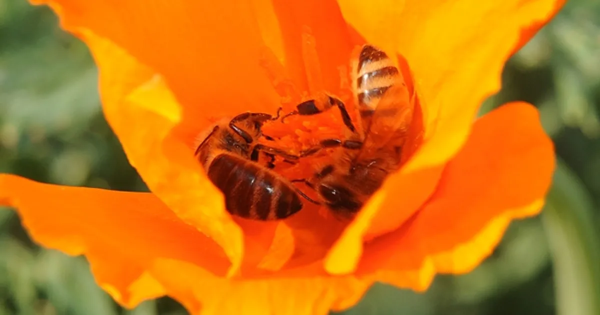 It's a sight to bee-hold when Apis mellifera and Eschscholzia californica meet in December.