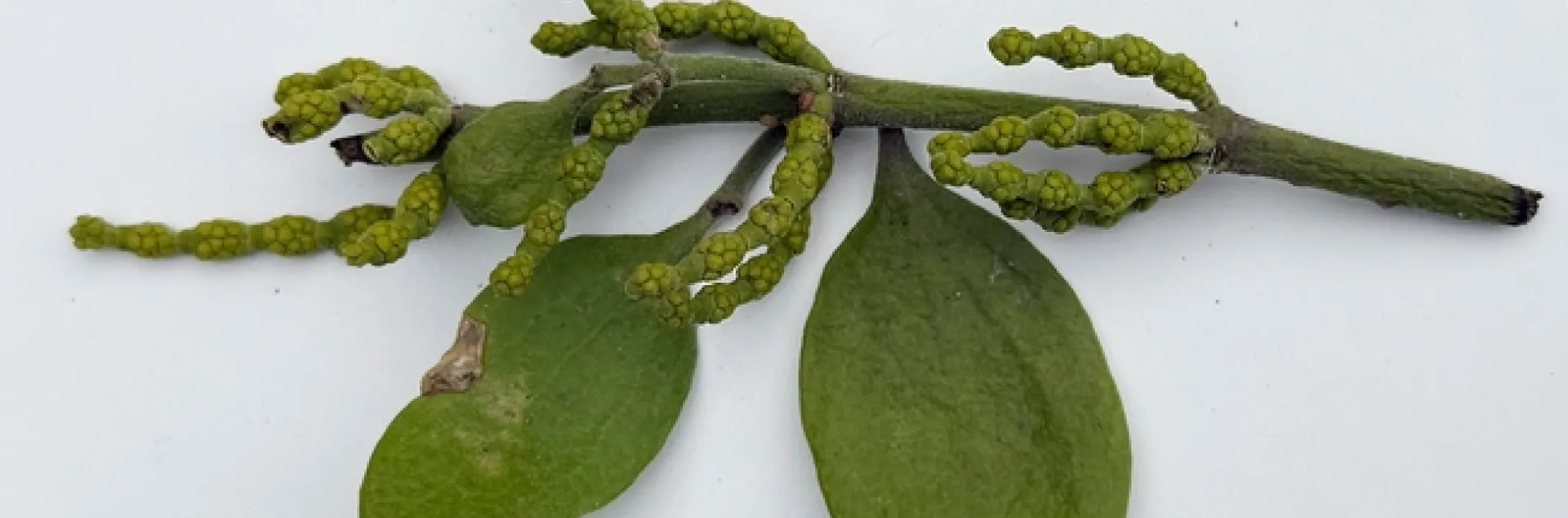 - Phoradendron villosum (P. flavescens var. villosum), the small-leaved mistletoe restricted to Oaks;