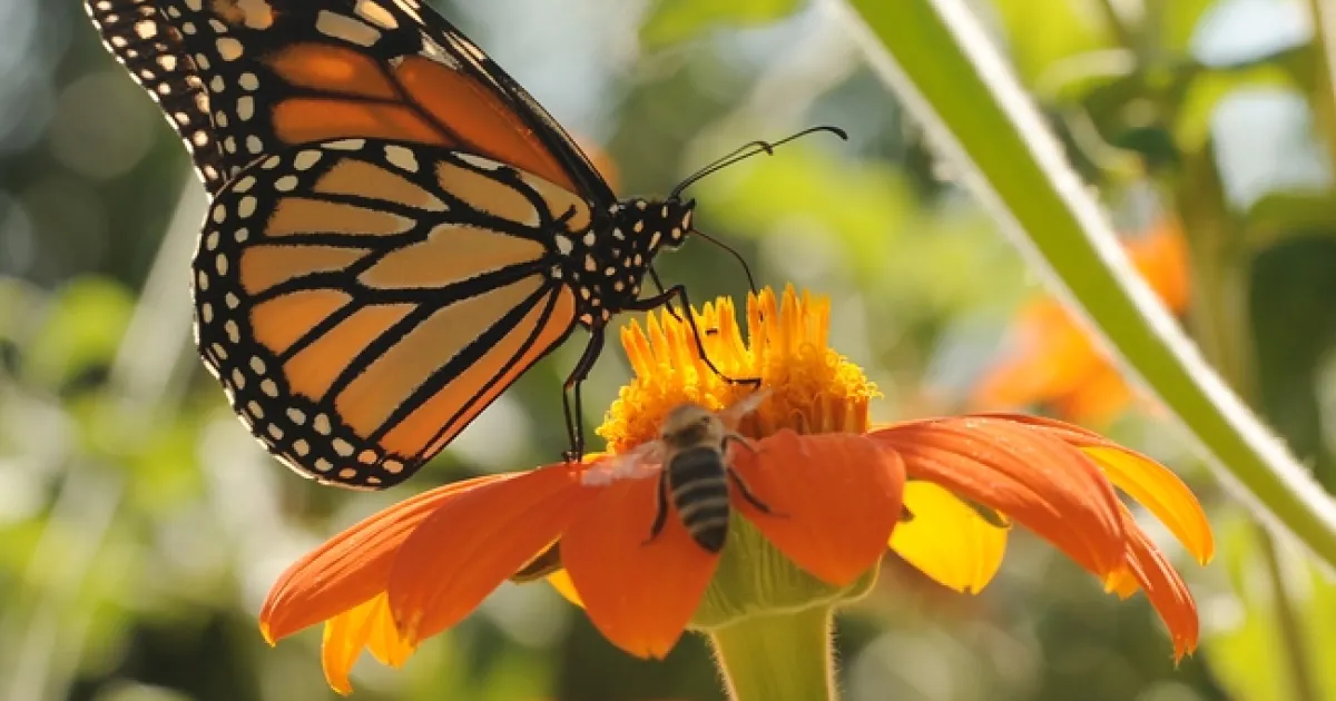 It was a butterfly-bee moment. Or more technically, a Danaus plexippus/Apis mellifera moment.