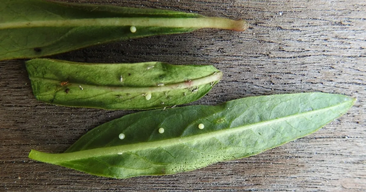 Note that the lady beetle lays her eggs in clusters, so if you find a cluster of eggs, those aren't monarch eggs.