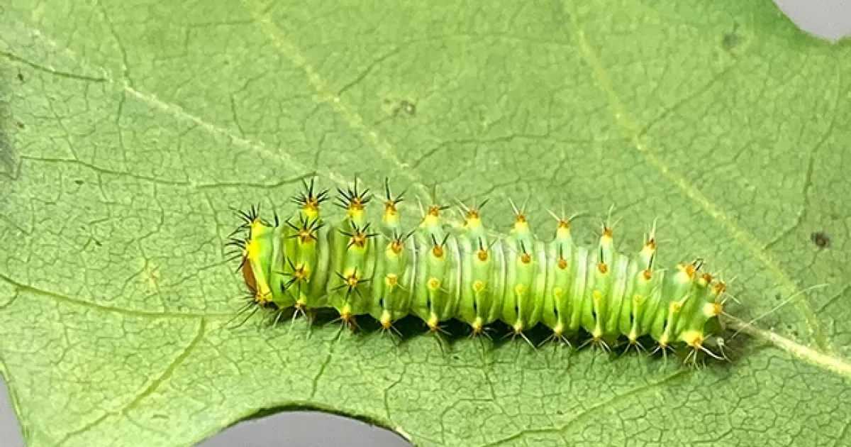 The Polyphemus silk moth laid flat, light-brown eggs, and the eggs hatched into larvae or caterpillars. They fed on the leaves of a host plant, the Valley oak. Kareofelas said he reared and released a total of nine moths. They emerged as adults on June 21. The entire process, from egg to larva to cocoon to adult, took less than two months.