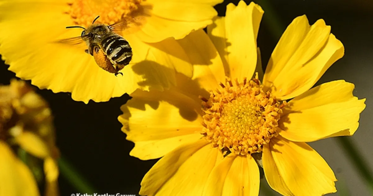 Svastra obliqua expurgata, also called "the sunflower bee," absolutely loves Coreoposis californica, sometimes called tickseed.