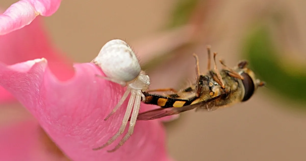 Not for the flower fly, though. A crab spider, lying in wait, pounced.