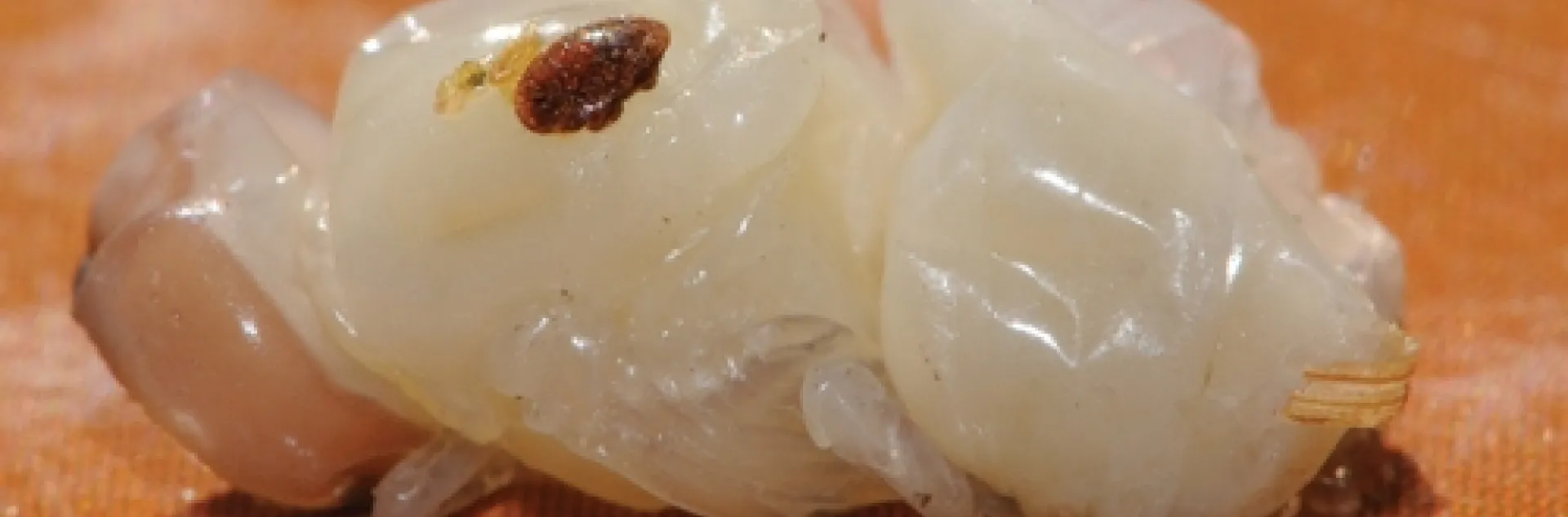It's not a pretty sight--the Varroa mite attacking a honey bee.