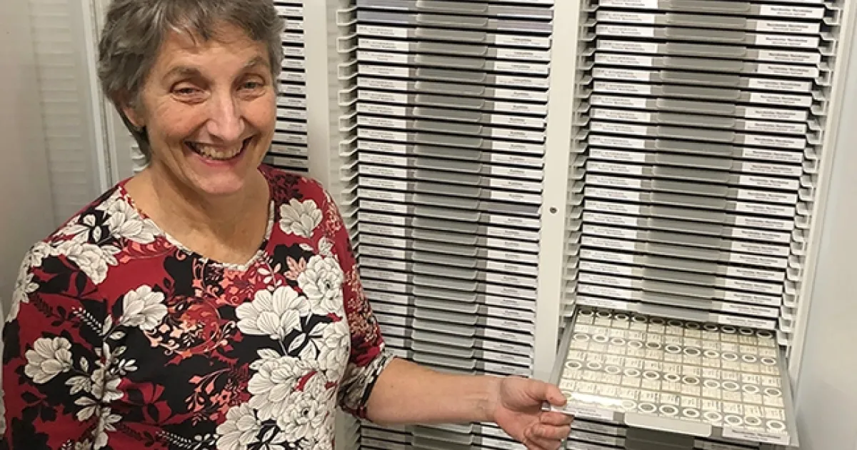 The Bohart collection includes some 25,000 slide-mounted specimens. Kimsey and collaborator Carl Johannsen work on a National Science Foundation grant "to database and conserve" the collection. "This collection is the result of years of collecting, mounting, imaging, and identifying by former collection manager Bob Schuster and emeritus professor Al Grigarick and their collaborators," Kimsey points out.
