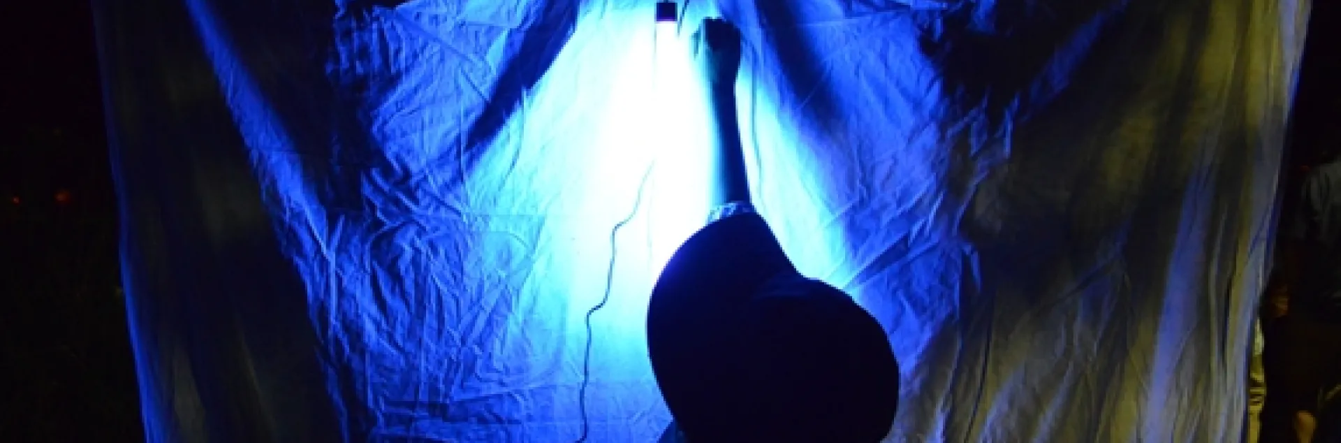 - "Moth Man" John DeBenedictis of Davis and Bohart senior museum scientist Steve Heydon showing the crowd the moths flying into the blacklighting and mercury vapor lighting setup.