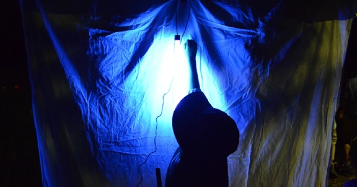 The event took place from 8 to 11 p.m. The crowd marveled at the moth specimens inside the museum, and then stepped outside to check the moths flying into blacklighting and mercury vapor setup.
