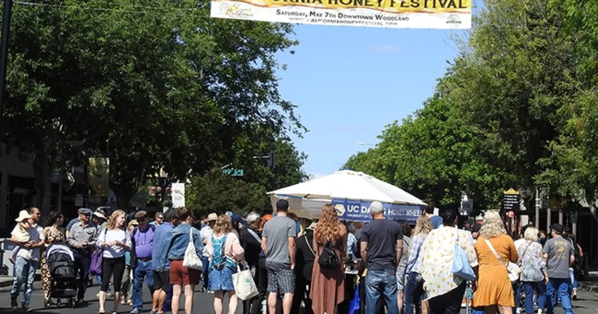 Amina Harris, director of the UC Davis Honey and Pollination Center and a co-founder of the California Honey Festival, explained what the honey flavor wheel is and invited the crowd to sample honey varietals.