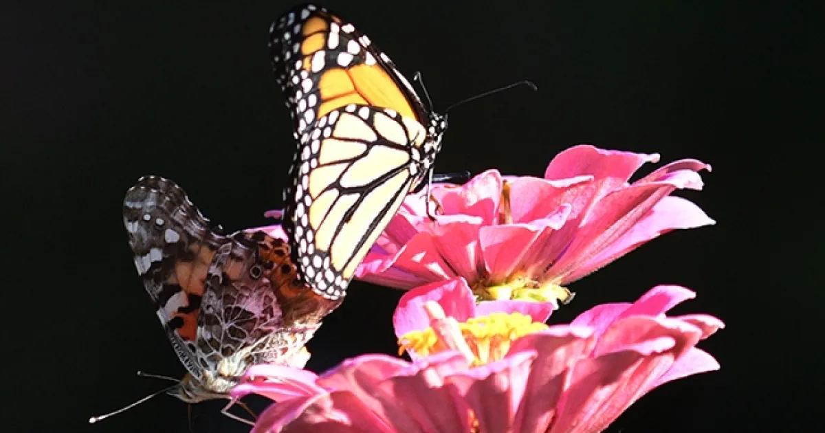 So here's this male monarch nectaring on a pink zinnia in a Vacaville pollinator garden.