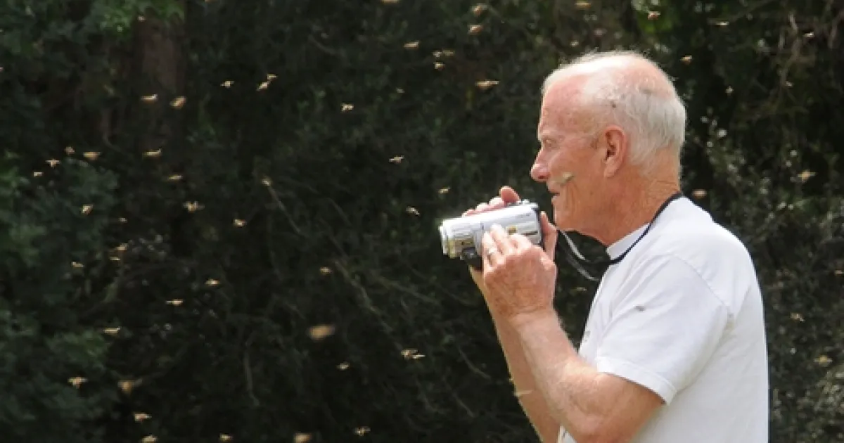It was perfect for one of Cobey's students, Ventura resident Bill Weinerth, a veteran beekeeper and retired Lutheran minister. He films documentaries, so he was delighted to video-tape the swarm.