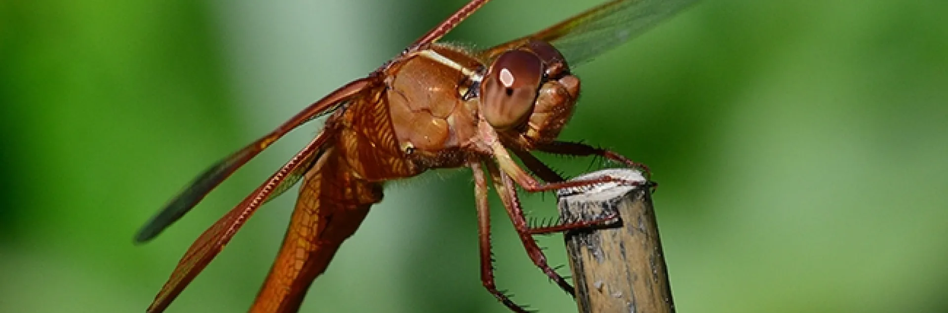 If you like dragonflies, you may want to purchase a dragonfly poster at the gift shop in the Bohart Museum of Entomology, located in Room 1124 of the Academic Surge building on Crocker Lane, UC Davis. It features 18 species of dragonflies, ranging from the common whitetail and green darner to the Western river cruiser and the bison snaketail. And, of course the flame skimmer.