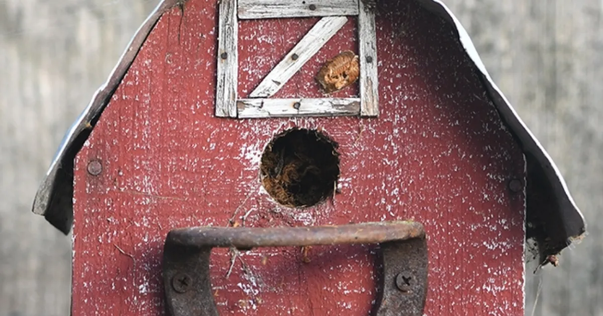 Then last week we spotted an ootheca on our decades-old weathered barn birdhouse.