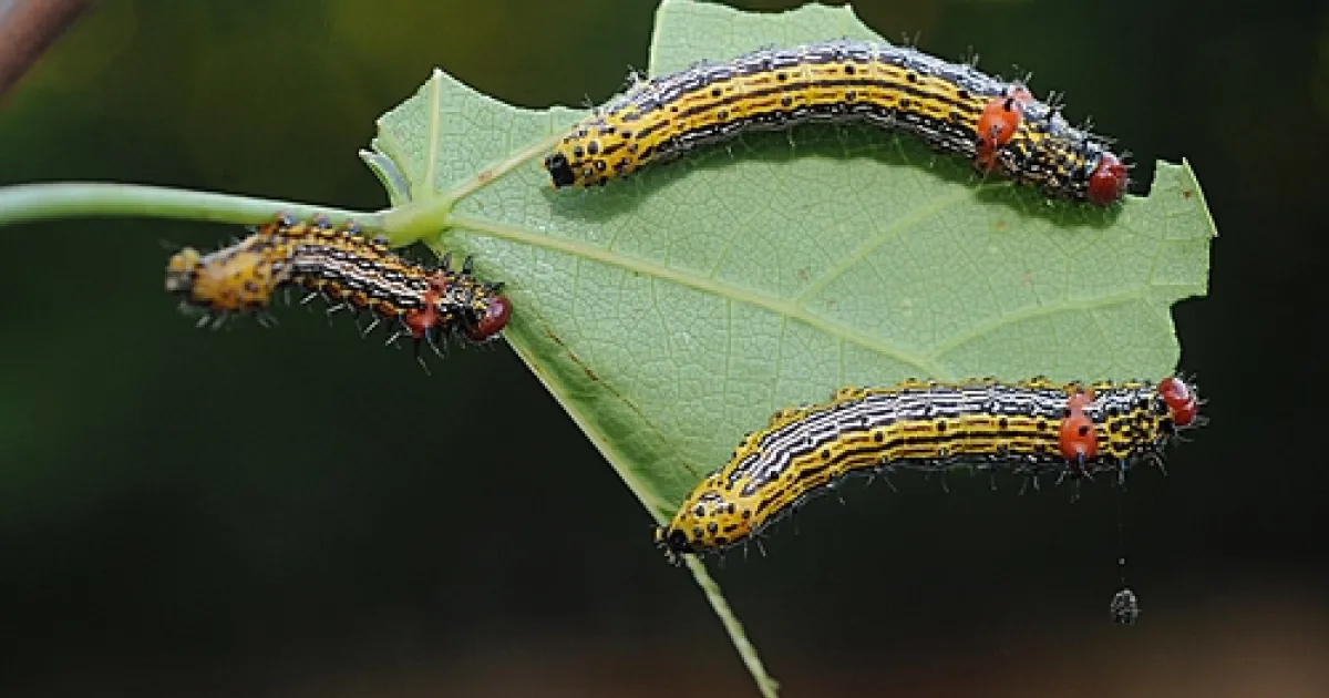 Distinguished by a bright red head and an equally bright red hump behind its head (Joey has neither, by the way), the caterpillar is yellow with red and white stripes. It's about an inch and a half long and can defoliate or skeletonize a leaf faster than you can say "The redhumped caterpillar is a Schizura concinna in the family Notodontidae." (Or “Joey Chestnut ate 54 dogs and buns on July 4, 2010 and took home the Mustard Belt.”)