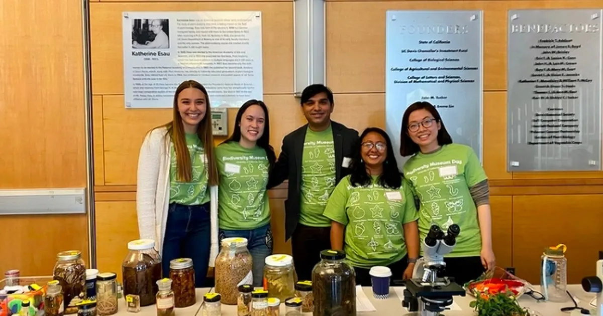 "We are excited to showcase the nematode collection for another year at the UC Davis Biodiversity Museum Day!" said doctoral student Veronica Casey of the nematology lab of Shahid Siddique, associate professor. "There will be jars containing preserved animal-parasitic nematodes, including dog heartworm and a worm donated by a student who was infected when traveling abroad (they're ok now!). We will also have samples of plants infected by plant-parasitic nematodes. Visitors can look under the microscope to see the amazing diversity of free-living nematodes extracted from a local soil sample. There will be a screen projecting a live feed of Caenorhabditis elegans, a model organism used in many different scientific fields. Visitors will get to take home their own fuzzy toy worm!"
