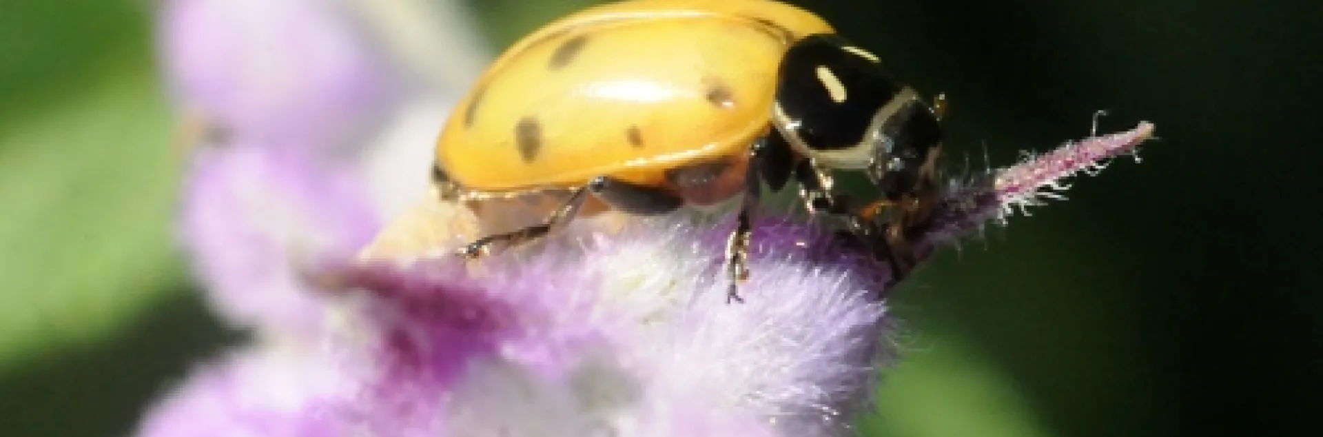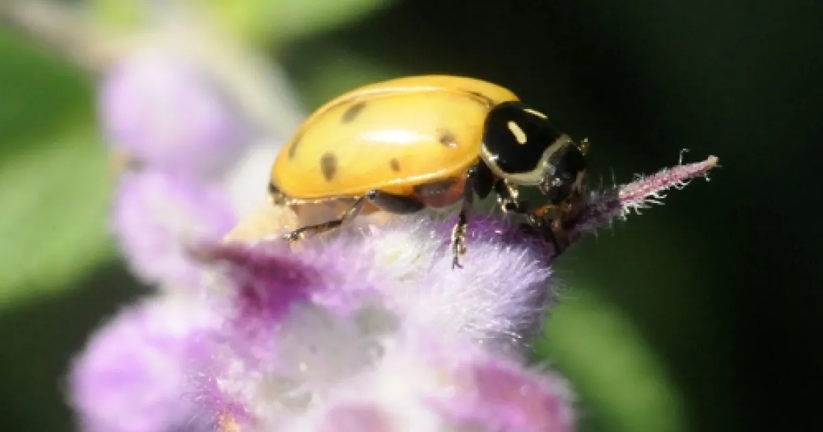 Ladybugs (family Coccinellidae) aren't always the classic reddish-orange color and they don't always have spots. They can be mellow yellow! But they're your buddies. They feast on aphids, mealybugs, mites, and other soft-bodied insects.