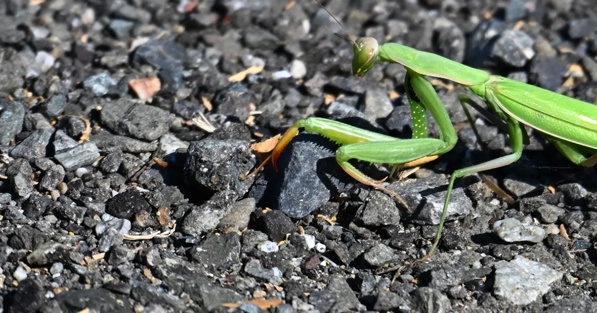The mantis sailed over my head, "like a bird on the wing," and then dropped to the ground, landing on rough gravel. It looked too heavy and clumsy to fly. But it did.