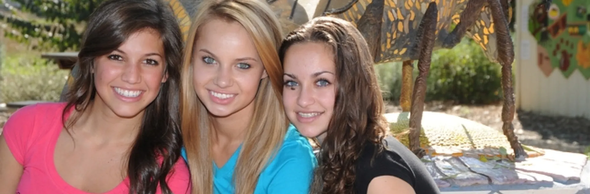 Honeybee Trio is comprised of (from left) Karli Bosler, 16; Natalie Angst, 16, and Sarah McElwain, 15. In back is Donna Billick's bee sculpture. (Photo by Kathy Keatley Garvey)
