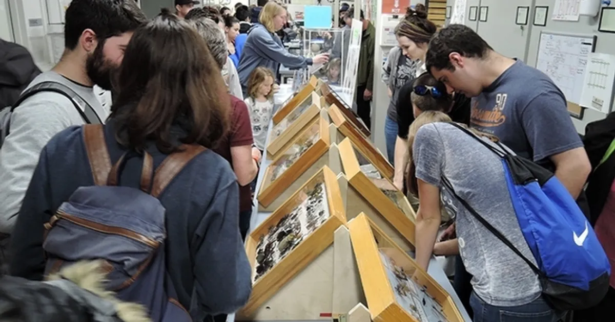 Thousands attended the UC Davis Biodiversity Museum Day; a video is now posted on YouTube. Here visitors check out the displays at the Bohart Museum of Entomology. The 2019 Biodiversity Museum Day is set Feb. 16. (Photo by Kathy Keatley Garvey)