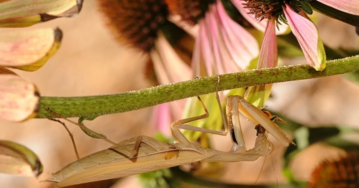 Camouflaged praying mantis having lunch. (Photo by Kathy Keatley Garvey)