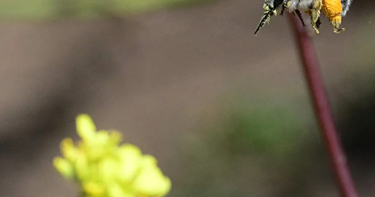 The female bee was literally making a "bee-line" for the mustard and wild radish. Bee research scientist John Ascher identified it.