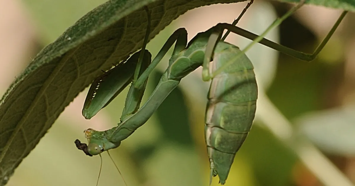 Acrobatic praying mantis in action. (Photo by Kathy Keatley Garvey)