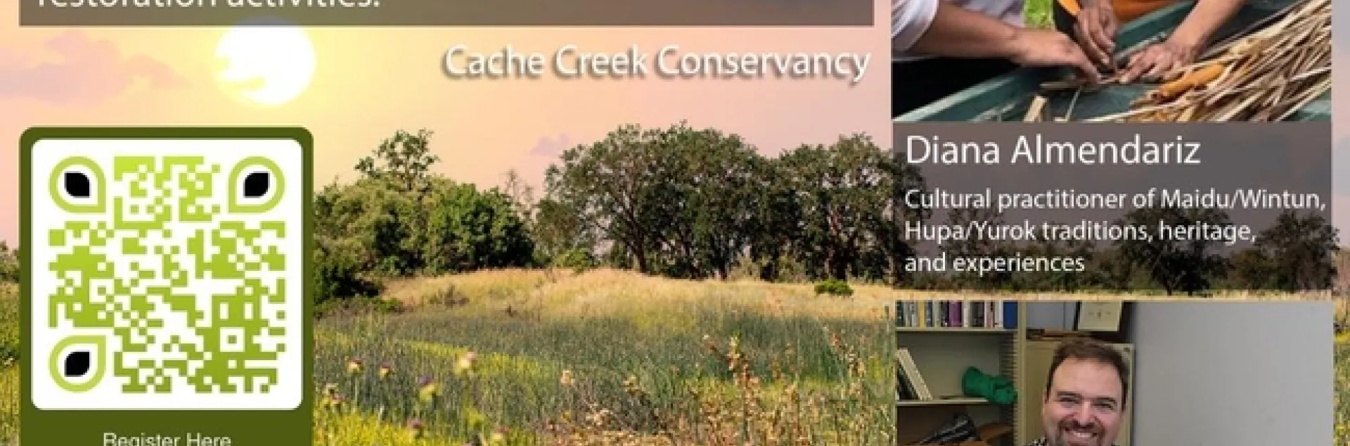 His collaborator is Diana Almendariz, a traditional ecological knowledge specialist and a cultural practitioner of Maidu/Wintun,Hupa/Yurok traditions, heritage, and experiences. She will discuss the precolonial relationships between native peoples and wetlands in Northern California, the impacts of colonization on those relationships, and the application of traditional ecological knowledge practices to restore damaged wetland ecosystems. (See video of her talking about her goals at https://www.youtube.com/watch?v=pcDZlPPFEik.)