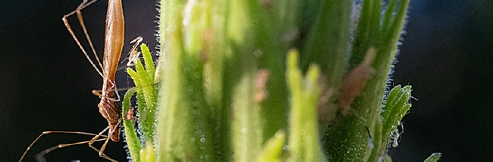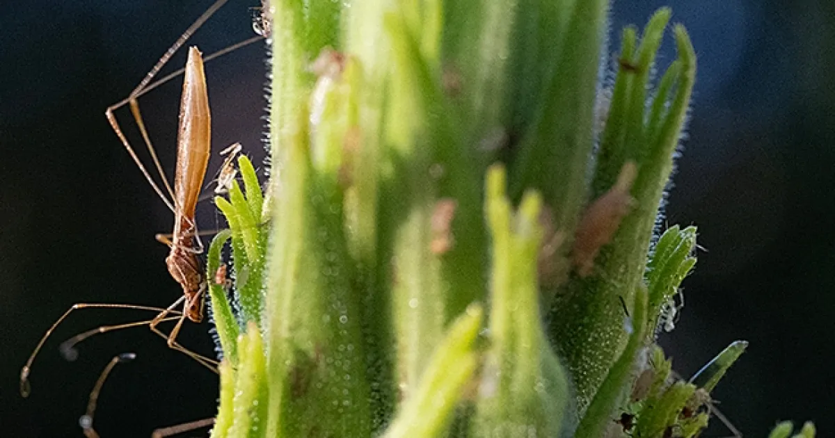 But there they were, stilt bugs, foraging on evening primrose at dawn in our "living laboratory"--a pollinator garden in Vacaville, Calif.